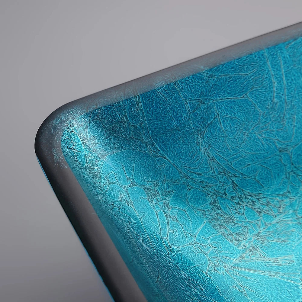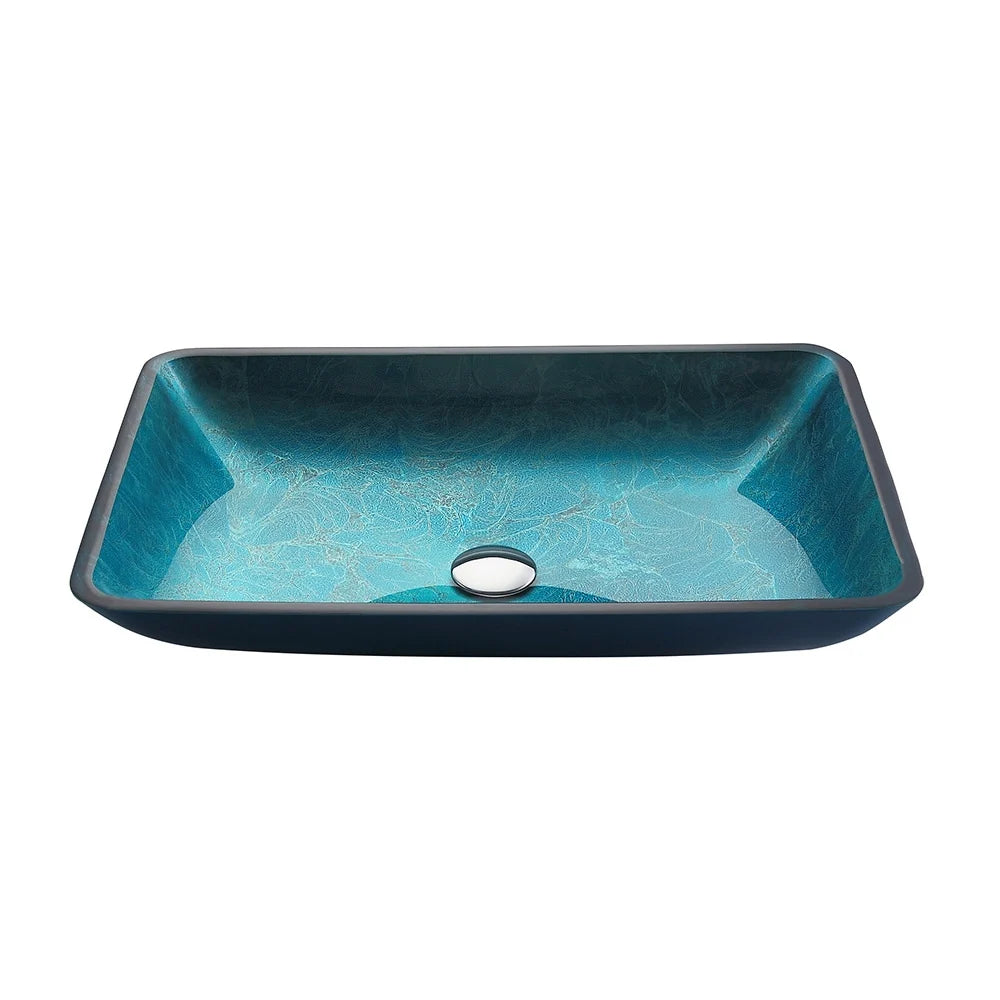 tempered glass countertop basin. Its modern rectangular shape and glossy finish make it a