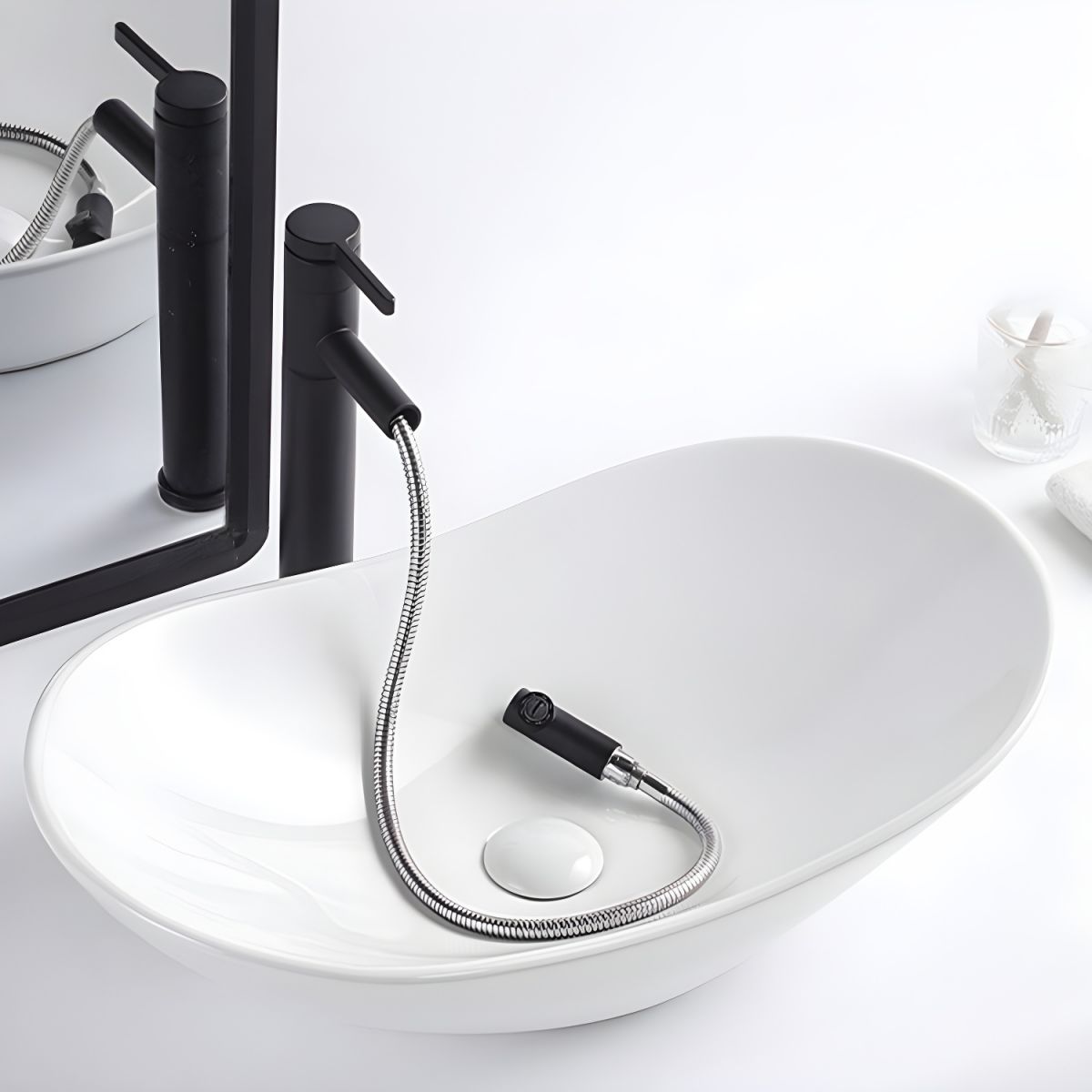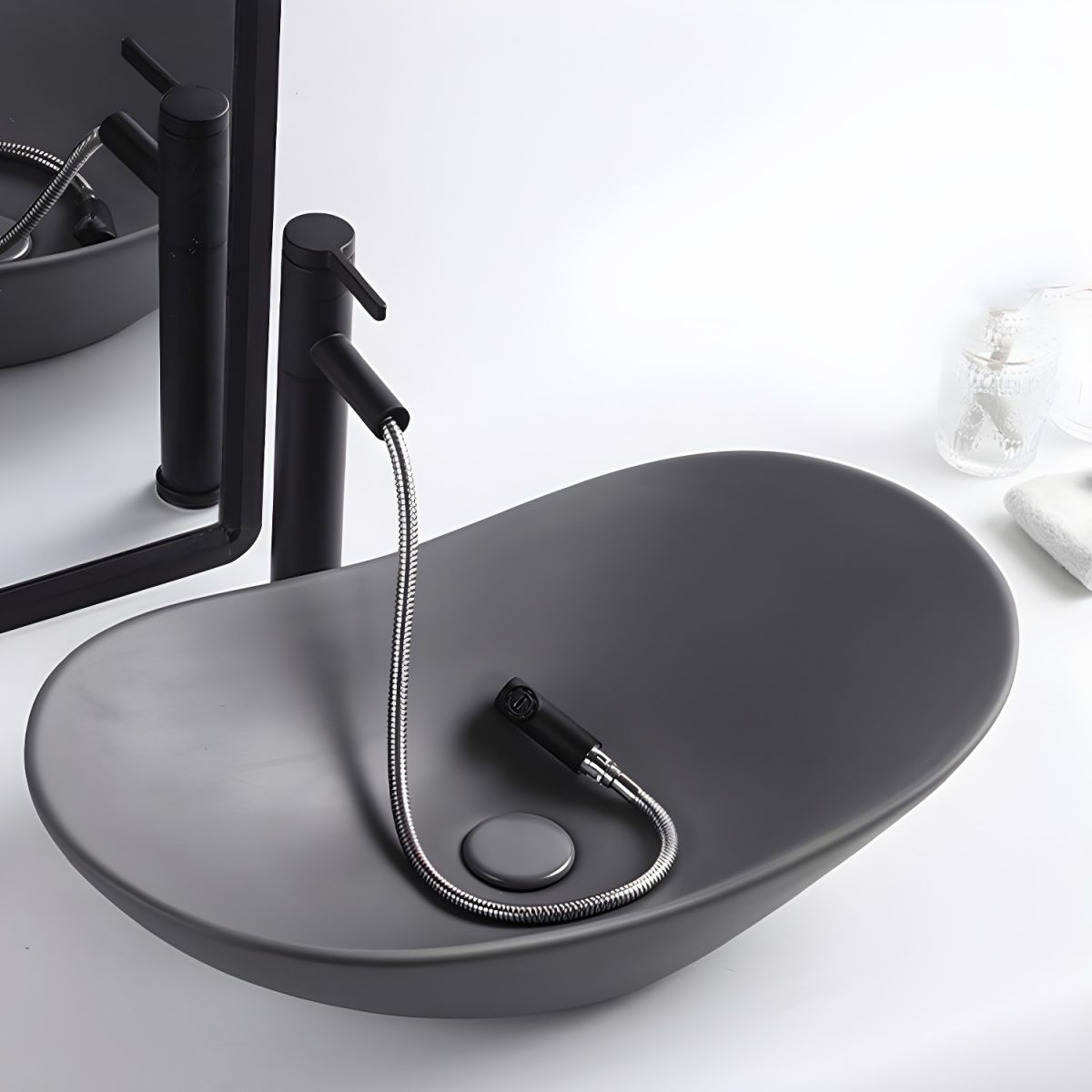 basin and faucet. Available in multiple colors, it brings a contemporary touch to any vanity or countertop setup.