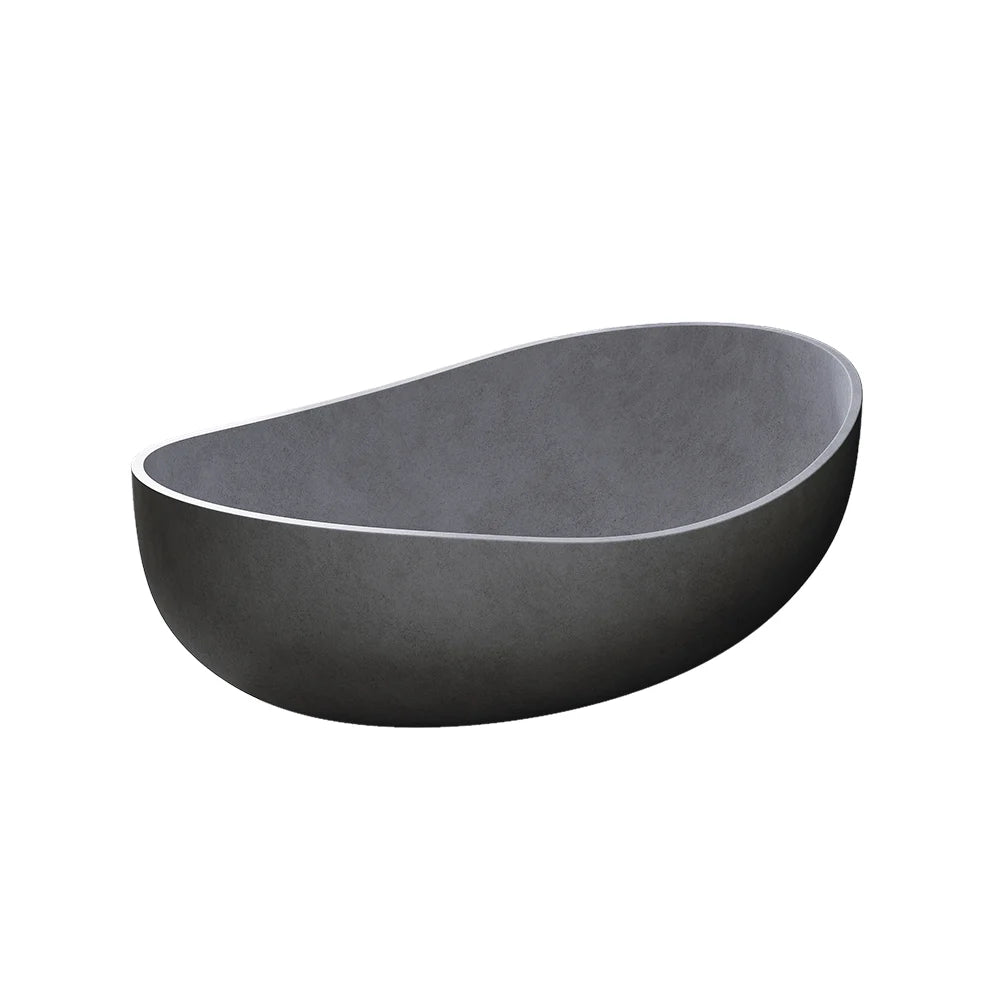 Bring raw, industrial edge to your bathroom with this gray concrete oval soaking tub. Its